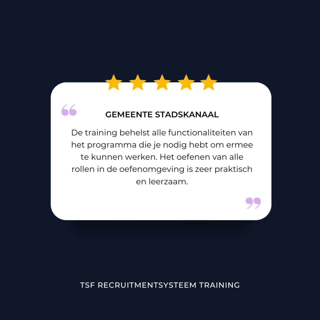 Bij TSF bieden wij onze klanten verschillende gebruikerstrainingen aan om alles uit het TSF recruitmentsysteem te halen.